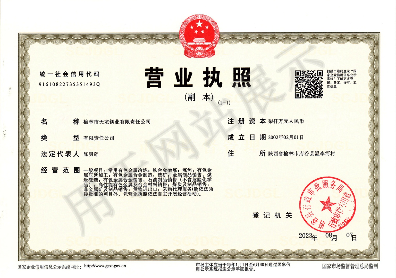 • 榆林市天龍鎂業有限責任公司安全生產承諾書